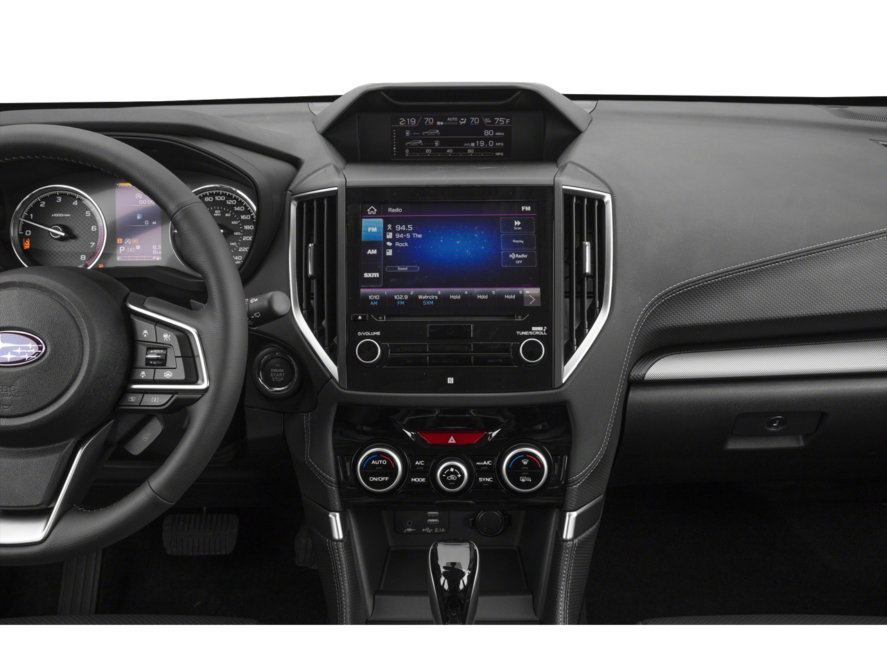 • Radio: Subaru Starlink 8.0" Multimedia Plus System -inc: AM/FM stereo HD Radio w/single-disc CD player w/MP3/WMA/CRR/RW file capability, multi-touch gesture high resolution display, 8.0" LCD screen, voice activated controls, Bluetooth® audio streaming connectivity, hands-free phone connectivity and hands-free SMS text messaging connectivity, Near Field Communication (NFC), iPod control capability, rear-vision camera display, SiriusXM All Access radio and Travel Link (subscription required), smartphone integration: AHA, Android Auto, CarPlay and Pandora, Starlink cloud applications: refer to subaru.com for app availability, 6 speakers, dual USB input ports, 3.5mm auxiliary input jack and body color roof mounted antenna